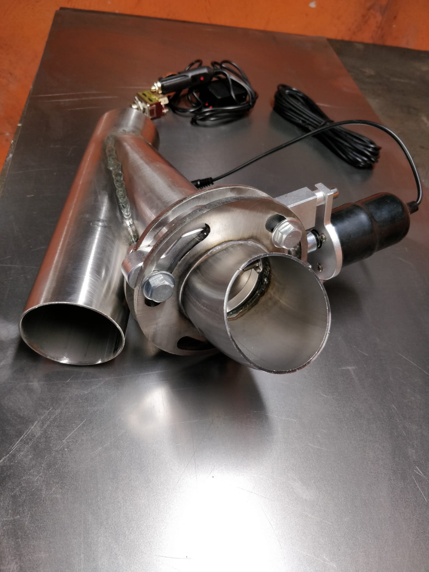 Válvulas de escape elétricas com rotação de 360 graus para um melhor ajuste. Material em inox. Medida de 63mm, 2.5 polegadas.